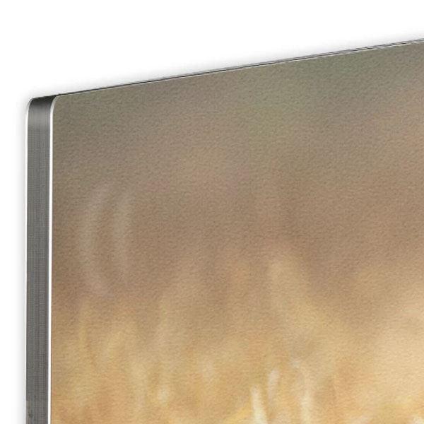 Standaard geleverd met 4 boorgaten incl. aluminium schroeven en afstandhouder. Hierdoor hangt het schilderij ca. 20mm vrij van de muur.