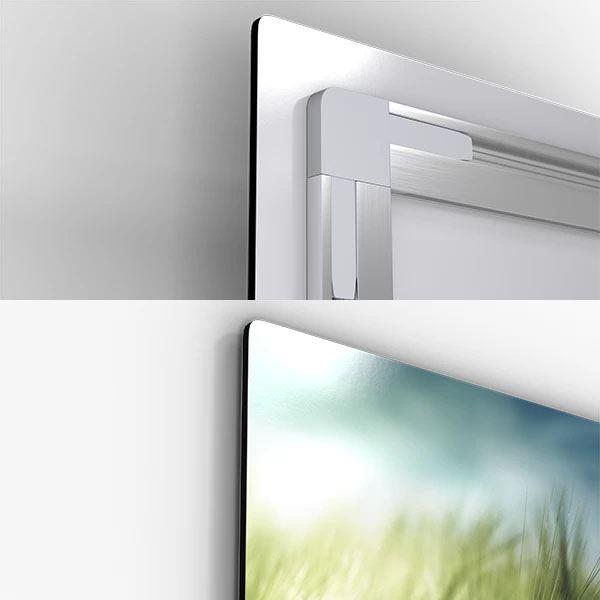 Het is ook mogelijk de aluminium wandversiering in chromen afstandhouders te plaatsen. Hierdoor zijn er geen boorgaten in de wandversiering nodig, maar wordt het geheel boven en onder in de afstandhouders geplaatst.